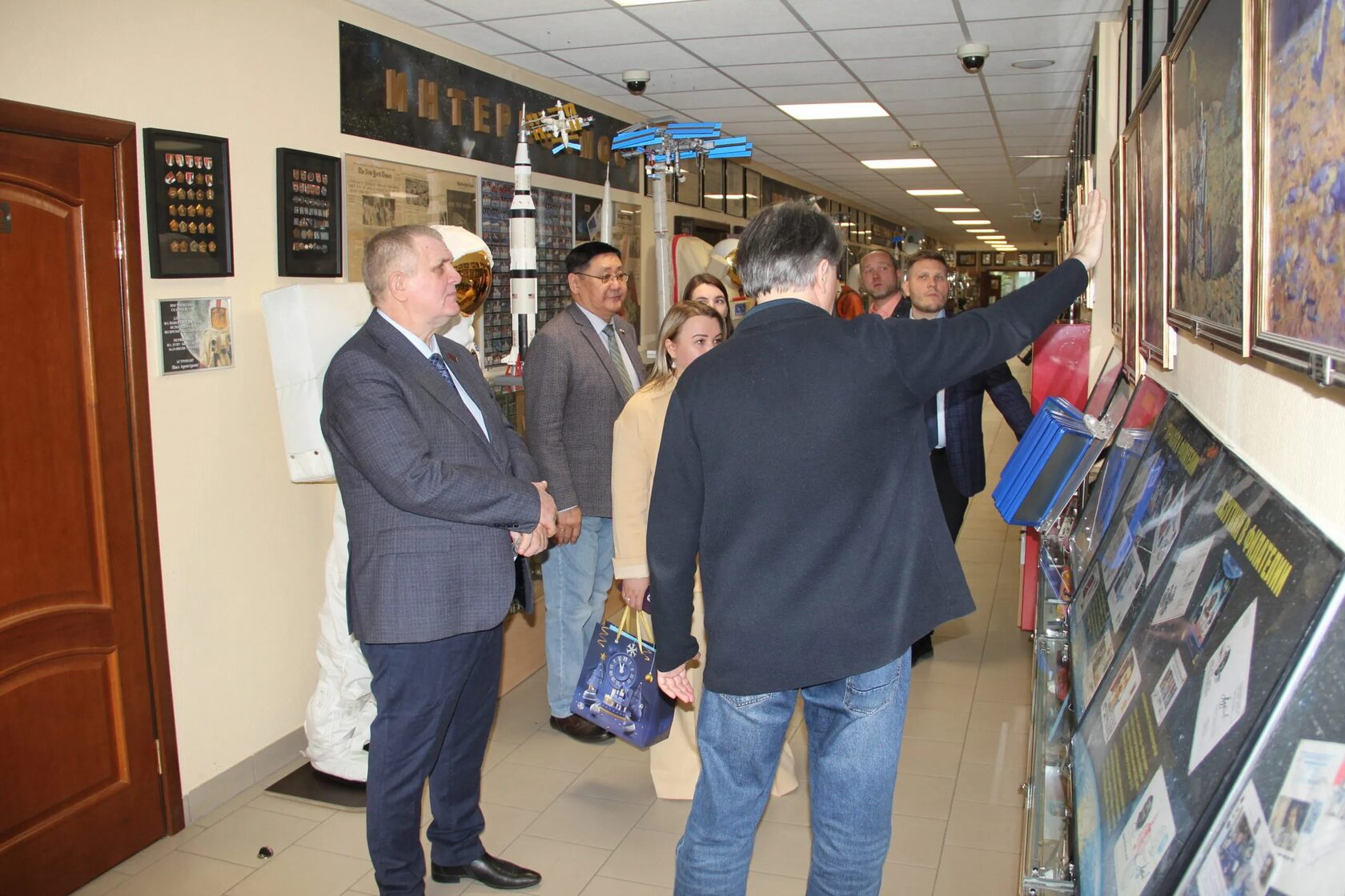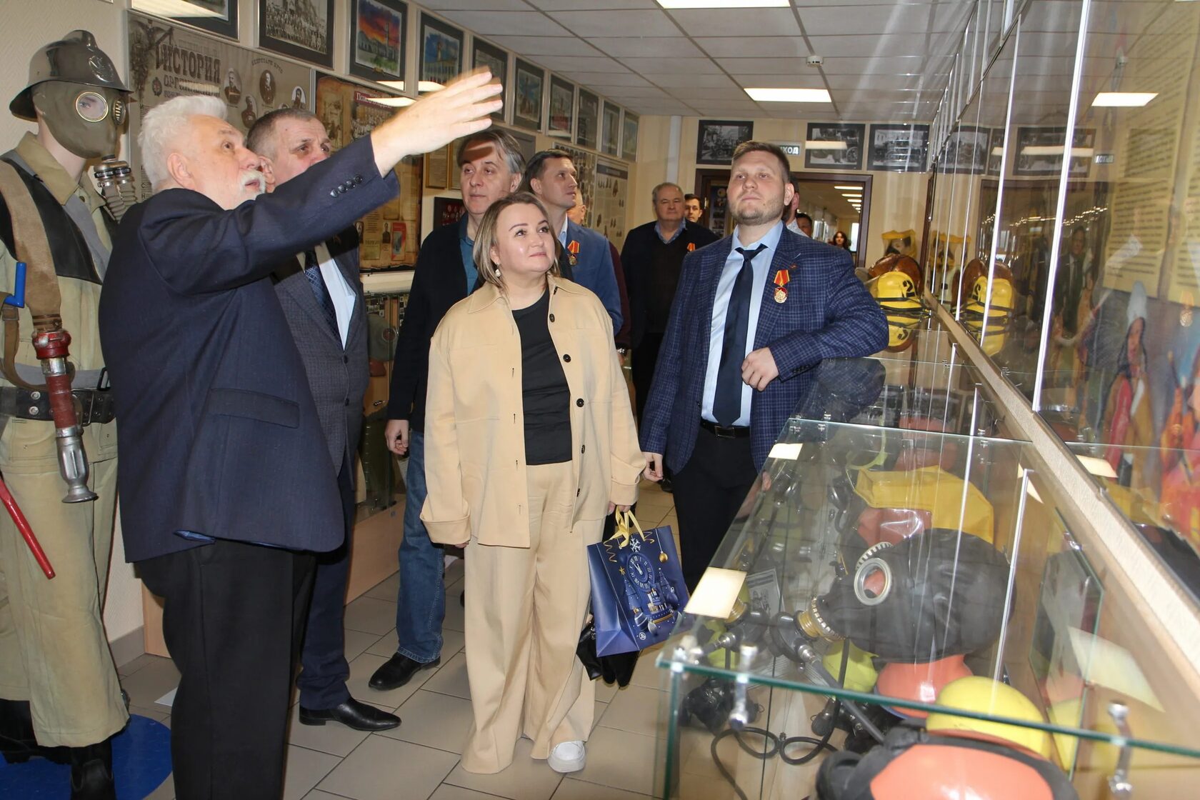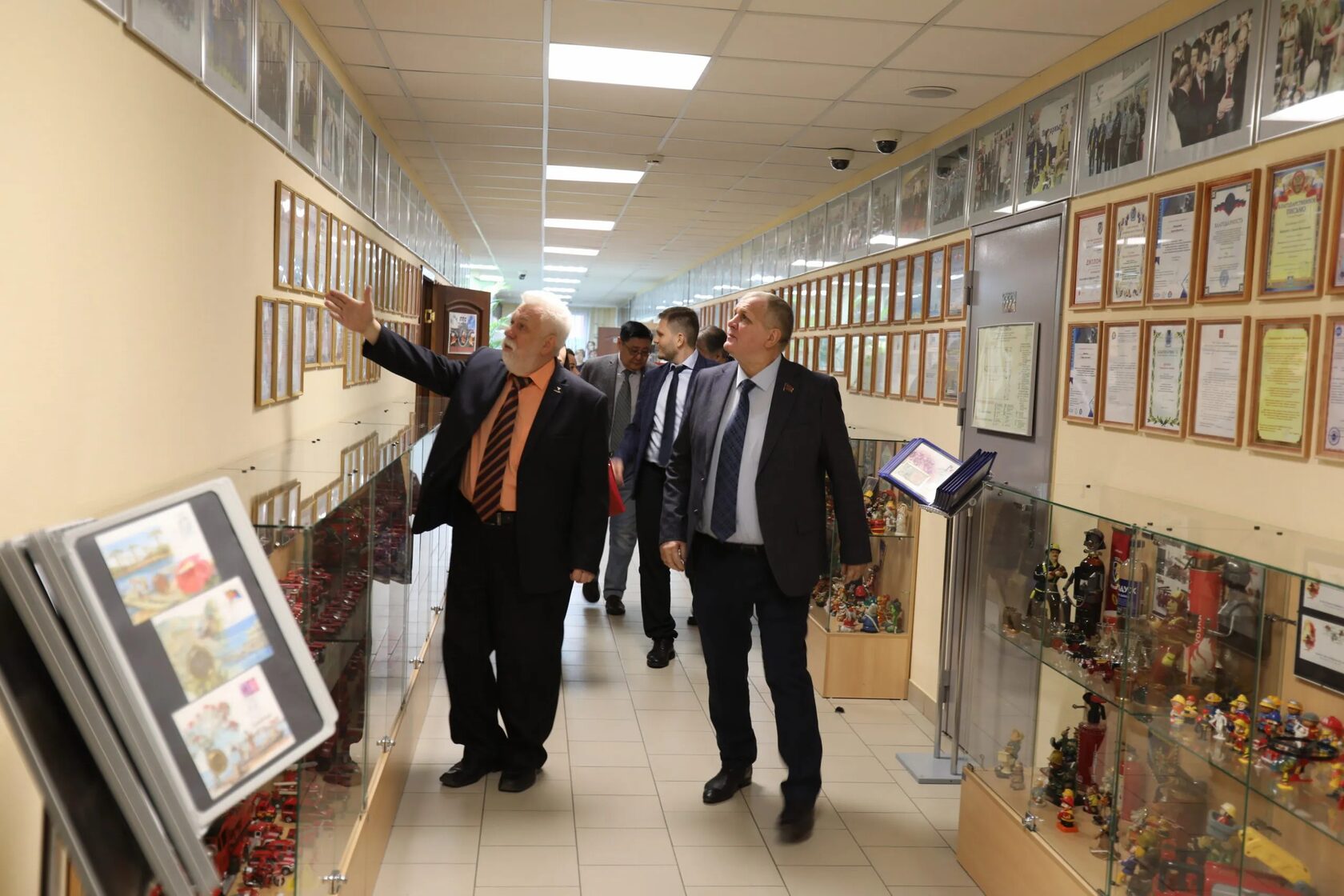 Сергей Яковлевич Барбулев провёл экскурсию для Н.В. Коломейцева и Т.С. Смирновой по музейным экспозициям, посвящённым истории водолазного и пожарного дела, истории авиации и космонавтики. Приятное впечатление на гостей произвела оранжерея с кактусами и суккулентами.