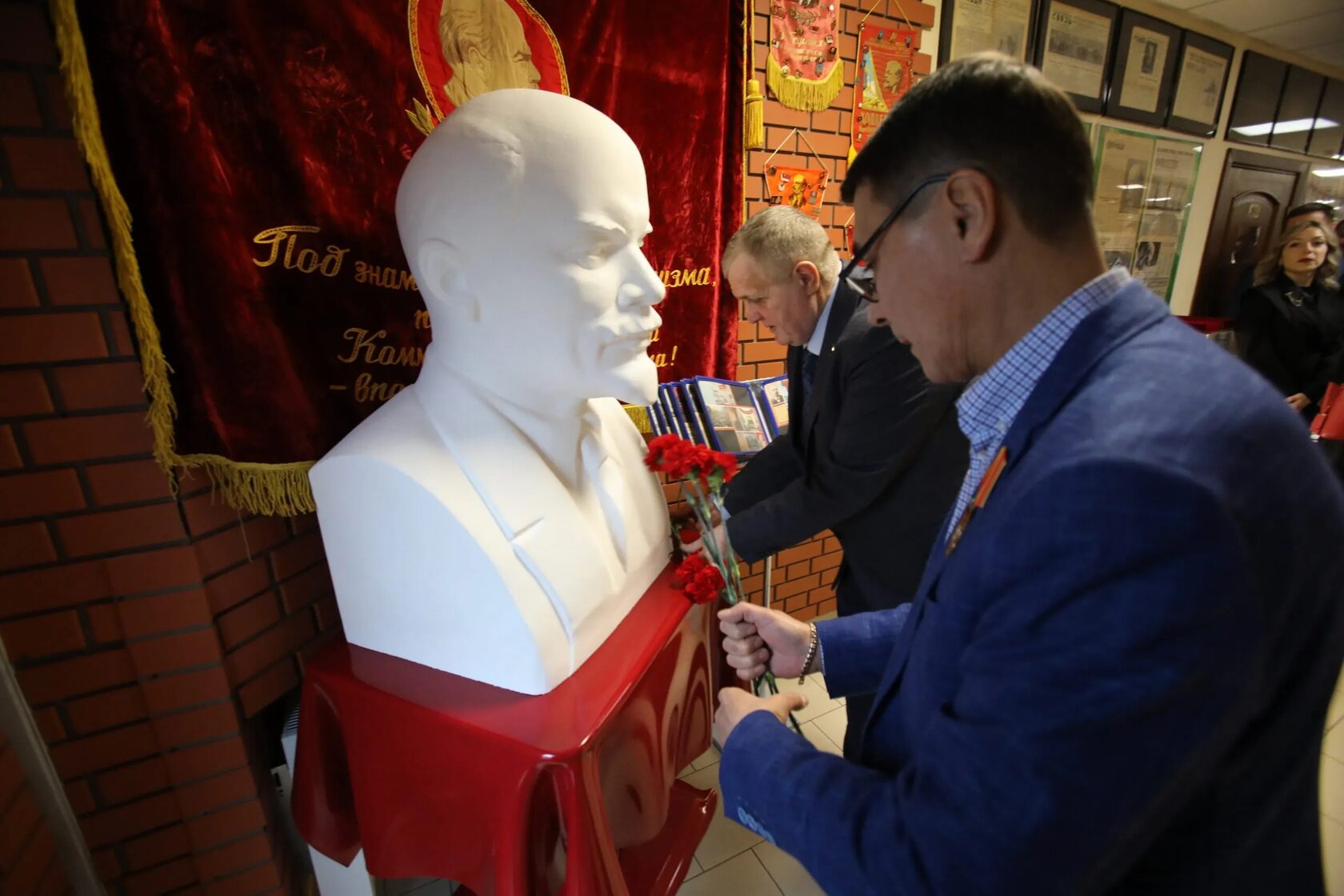 После встречи с коллективом состоялось торжественное открытие Красного уголка, посвящённого истории нашей страны, истории коммунистического движения, достижений СССР. Особую гордость музея предприятия представляет памятный бюст создателя СССР, идеолога коммунизма Владимира Ильича Ленина. Стоит отметить, что многие сотрудники АО «ПТС» выразили желание быть принятыми в пионеры и комсомольцы, так как у них не было такой возможности в своё время.