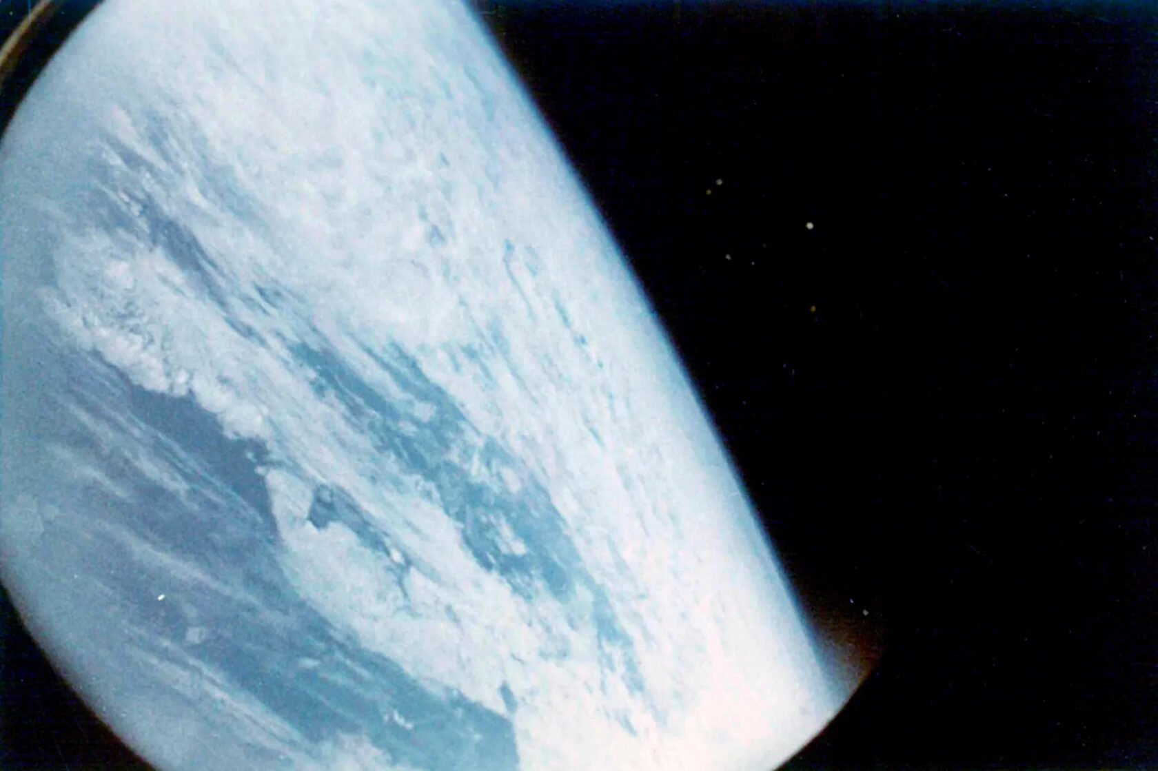 — Вот так выглядит наша планета с высоты двести пятьдесят и триста километров. Очень красивая, — не скрывая эмоций, докладывал Герман Титов после полёта, комментируя фотоснимки.